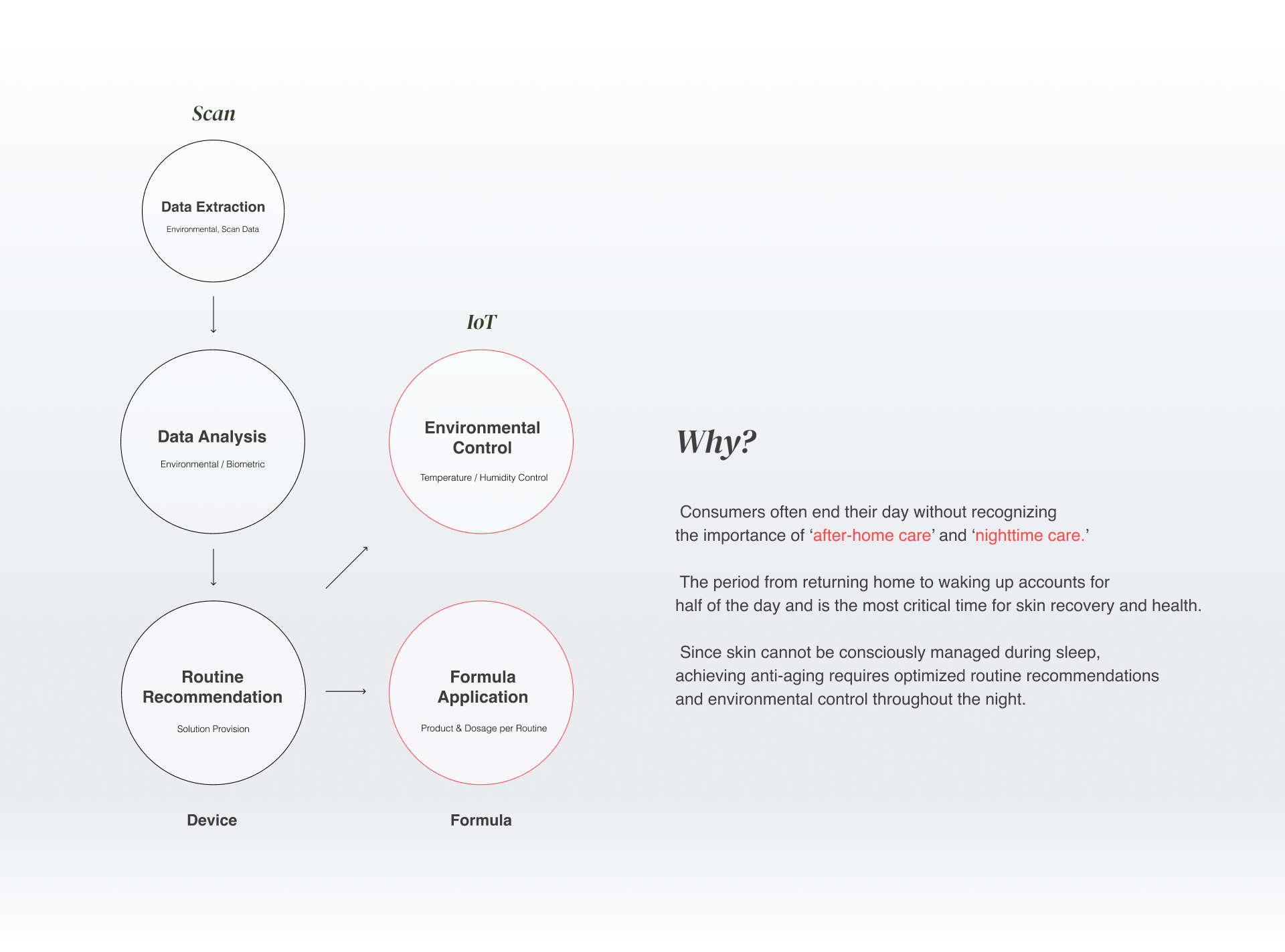 Through continuous sensing, it interprets skin and environment to curate the right care and optimize the sleep-care setting.