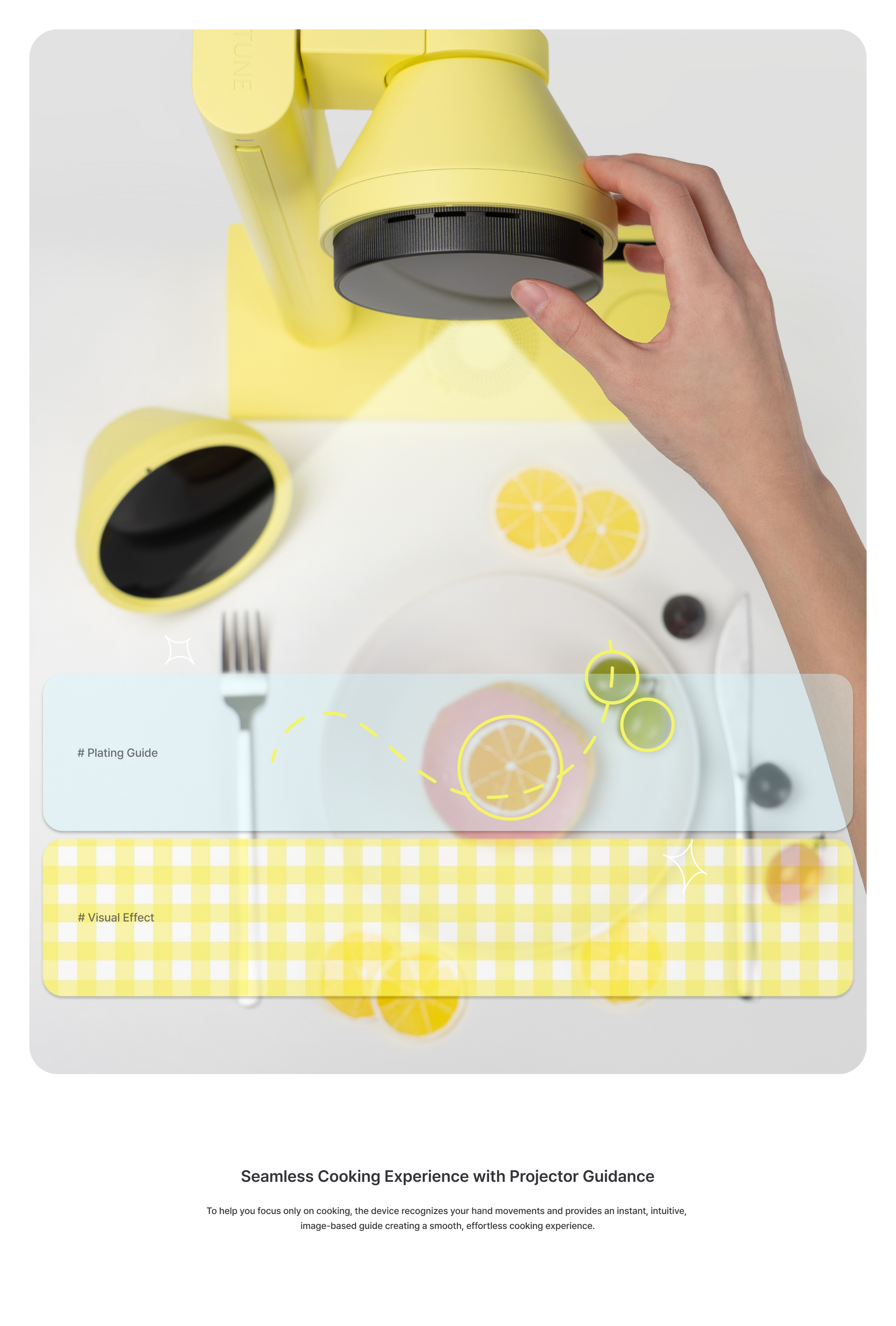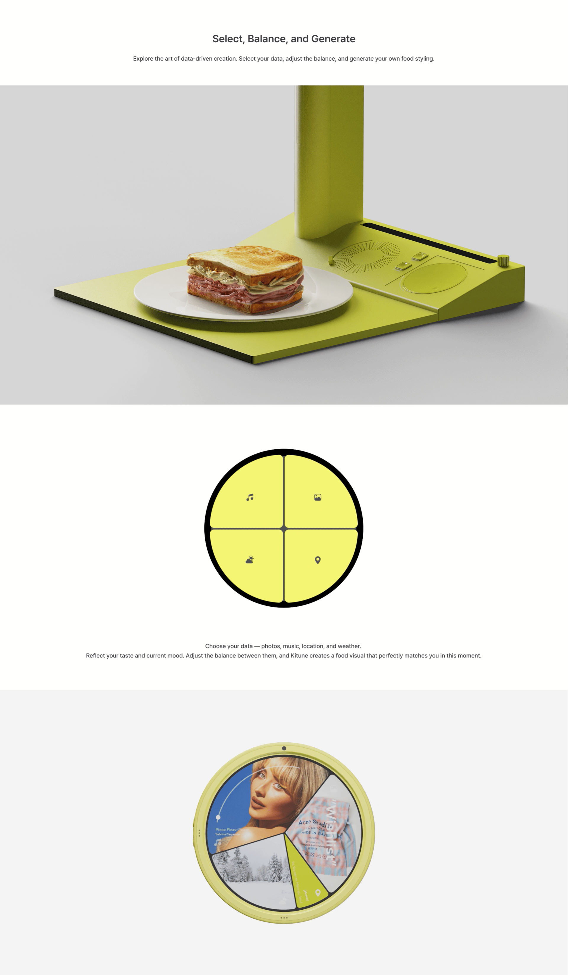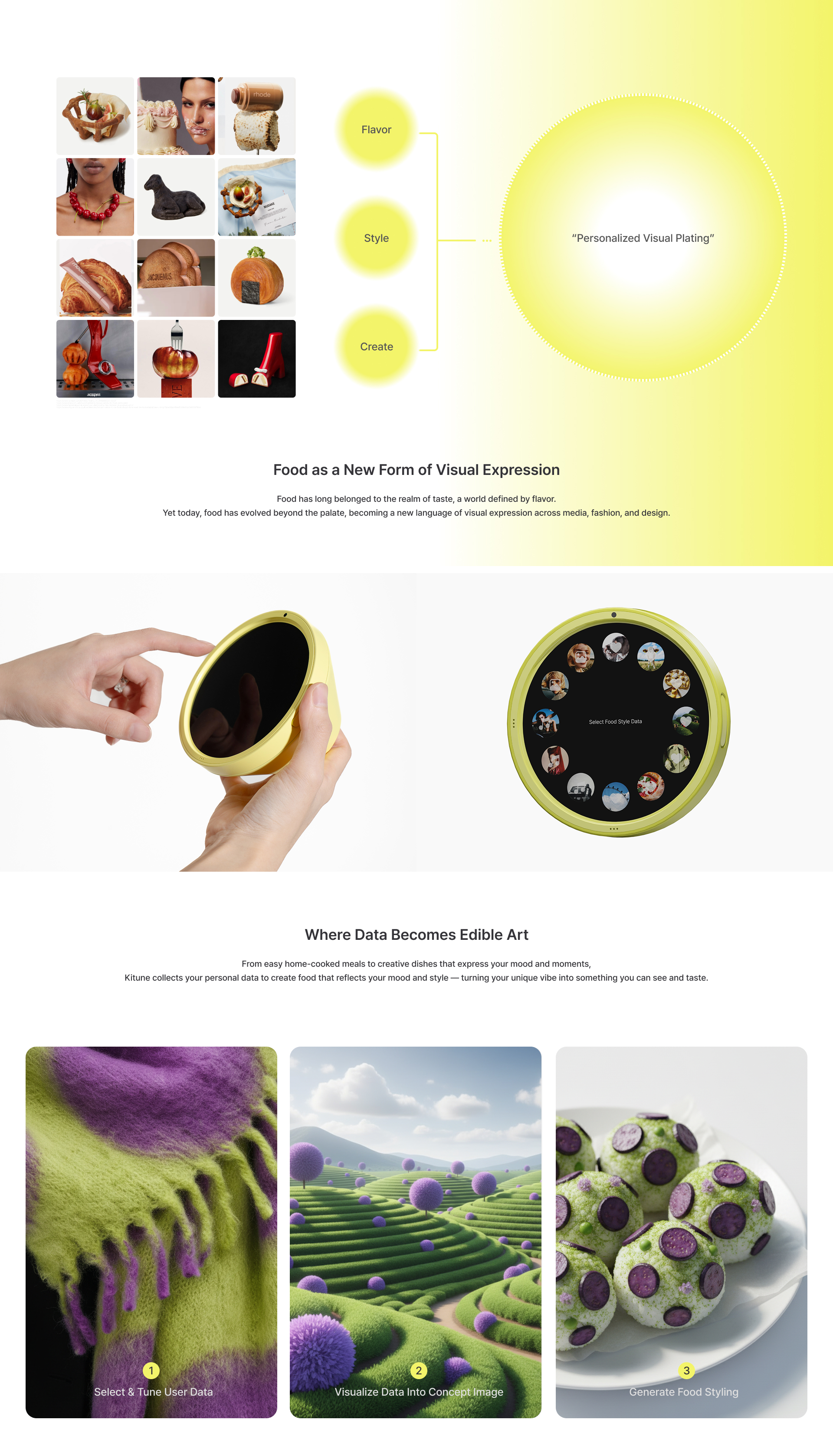 By combining your personal data, it generates visual concepts that match the mood of the moment and completes your plating.