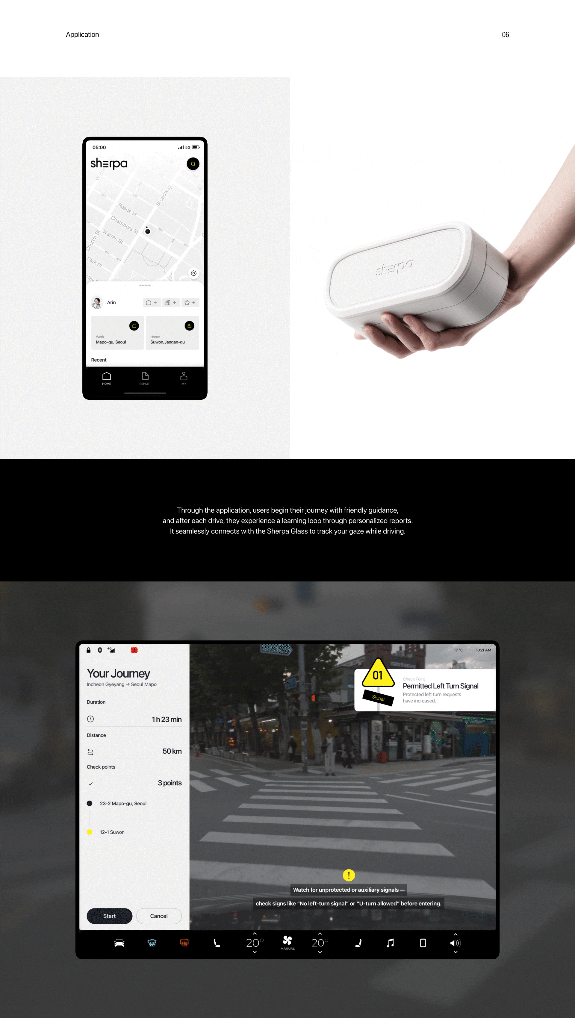 Sherpa offers a progressive driving experience that evolves before, during, and after each journey.