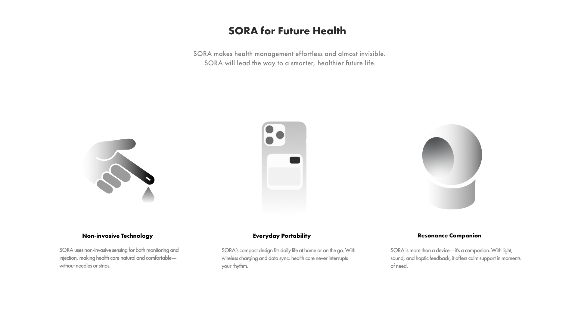 SORA is an AI health brand designed for diabetes patients. Through three core products—a glucose meter, a portable insulin pen, and an AI companion robot—combined with non-invasive detection technology, it integrates and analyzes dietary, glucose, and medication data with AI, providing users with a smarter, gentler, and more companion-like daily health management experience.
