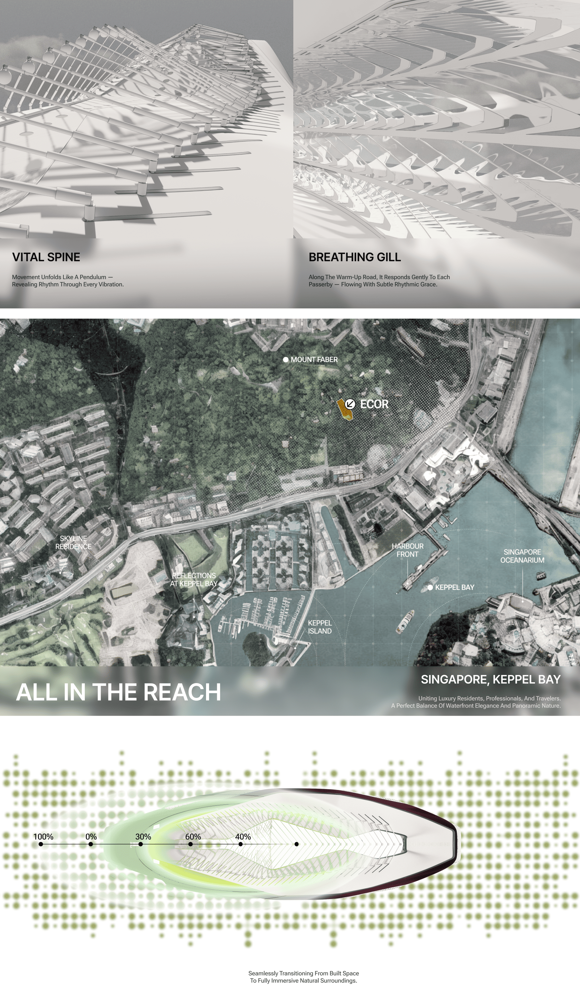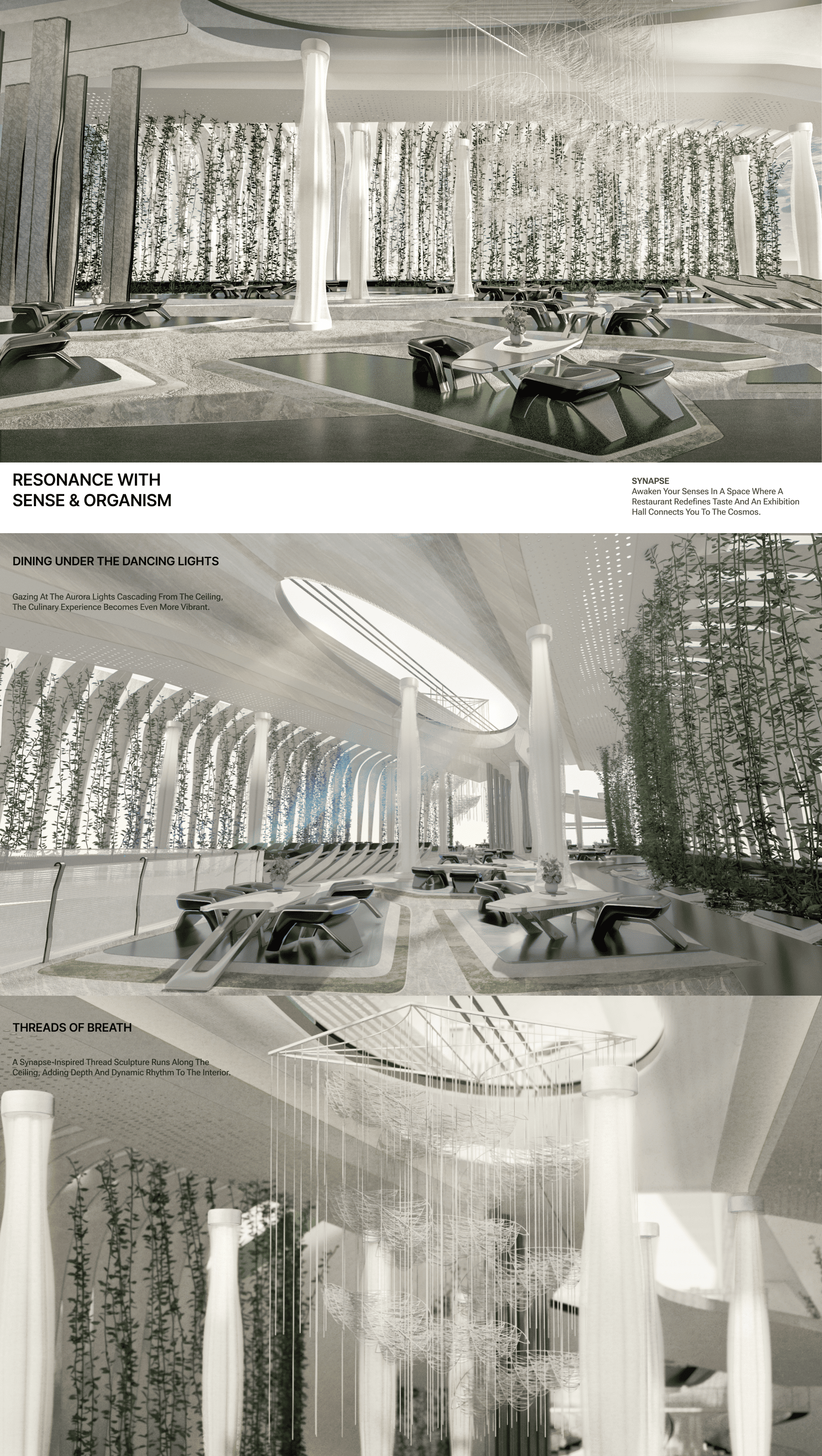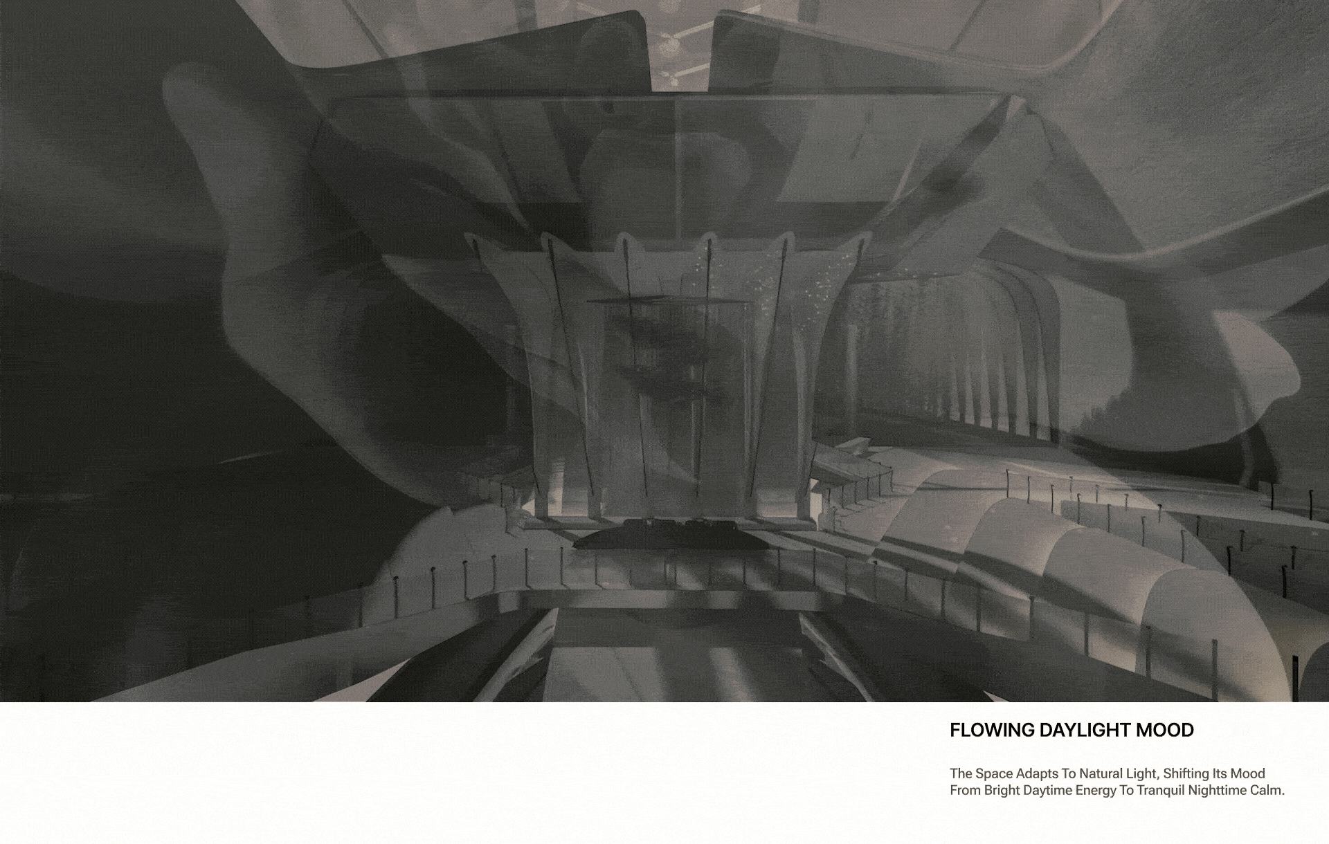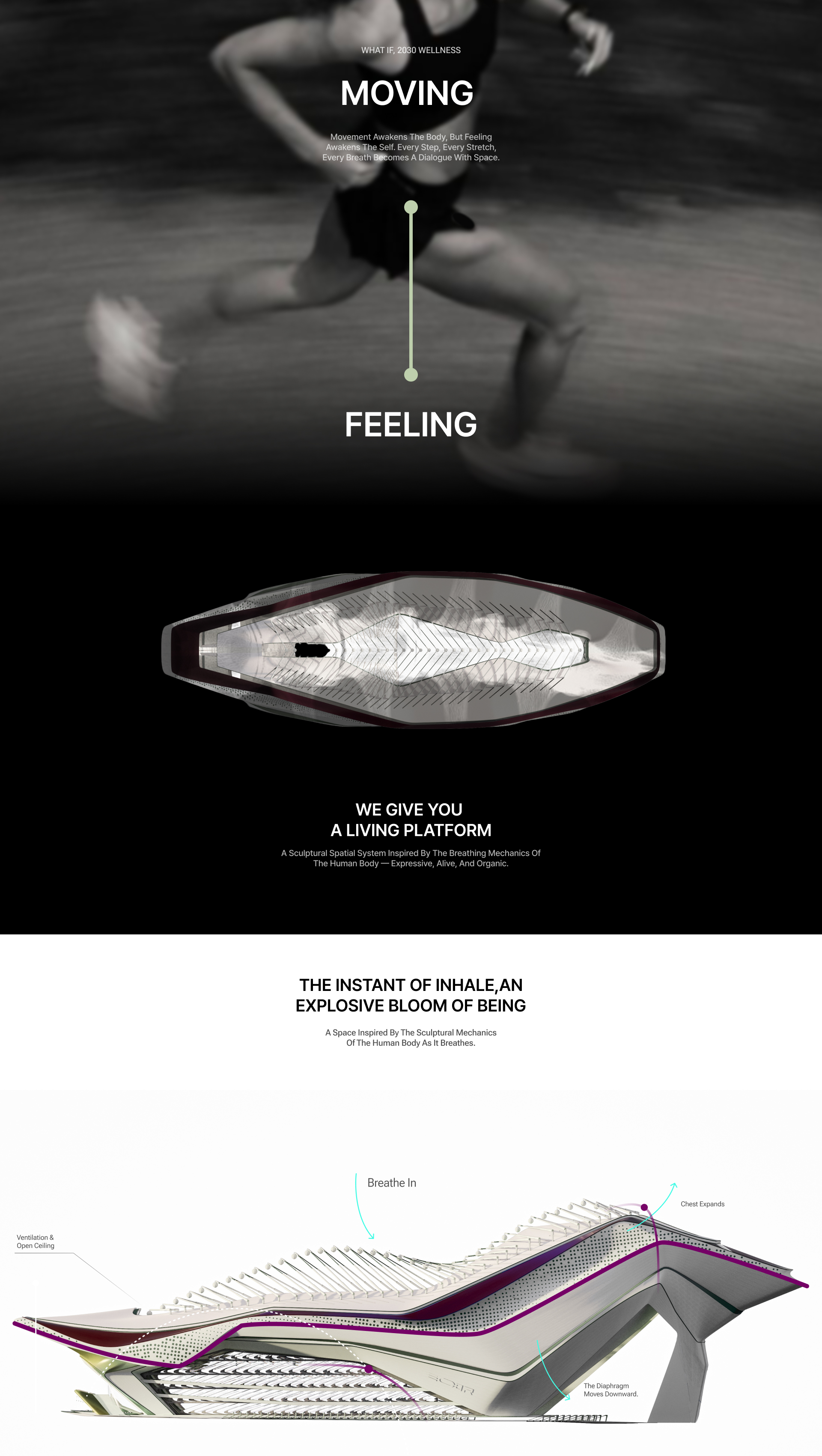 Unlike cold, inert structures, ECOR is living architecture that breathes, senses, and responds—a next-generation wellness platform reflecting human rhythm and breath, where body, technology, and art converge. Designed as a single body, it reacts to movement, light, and temperature like a living organism. Its interior spaces—Core Heart, Blue Womb, and Synapse—awaken bio-rhythms, evoke primordial calm, and connect light and taste, creating a new stage for the living body.